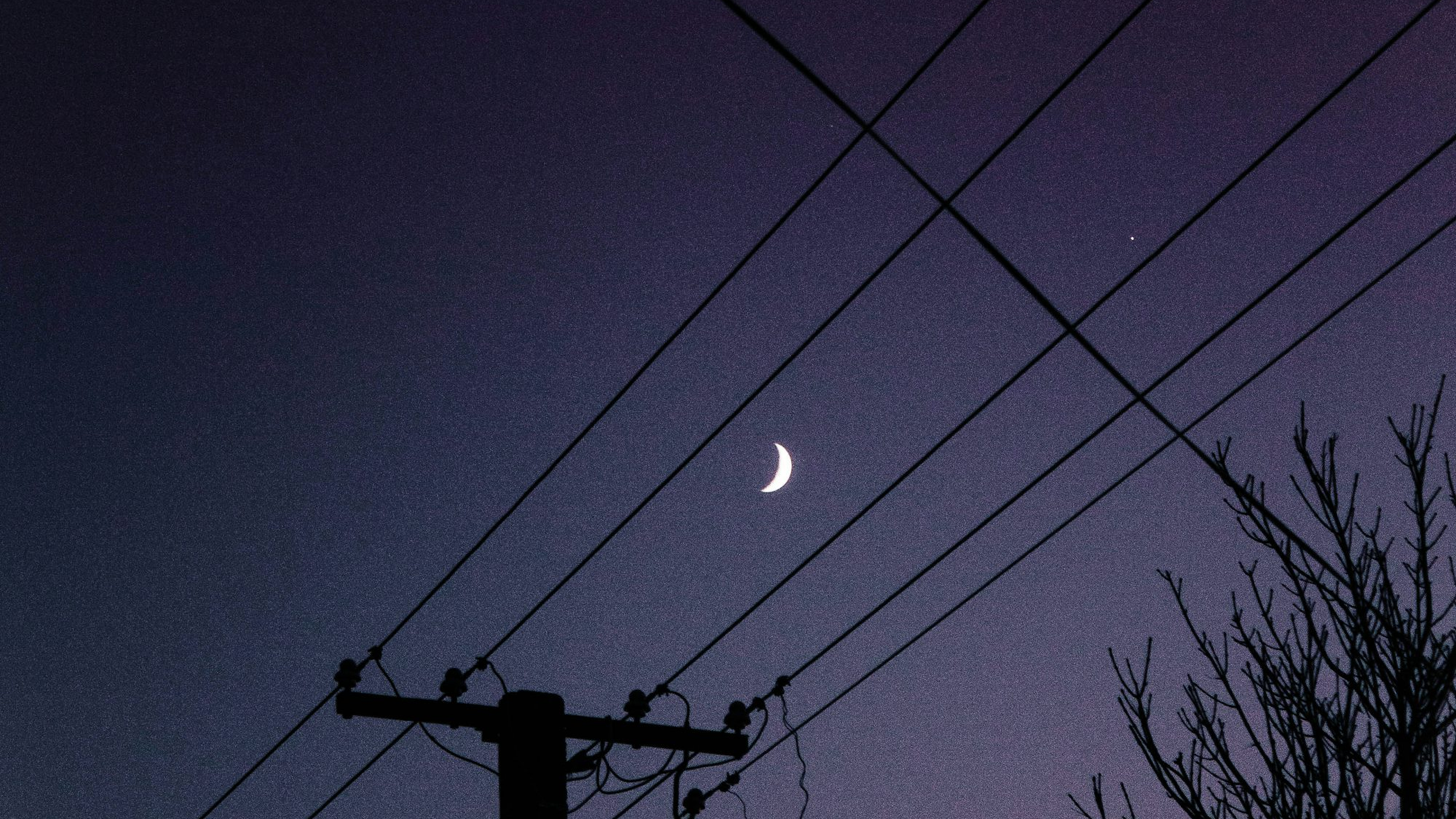 black electric post, blue night sky, night wallpaper, electric pole, dark sky, night scene, power line, silhouette, minimalistic wallpaper, urban landscape