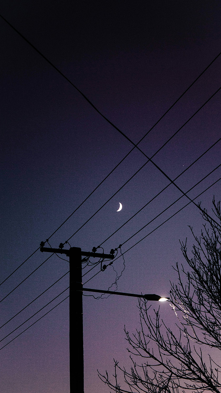 Wallpaper ini menampilkan tiang listrik hitam yang menjulang tinggi di bawah langit biru malam yang dramatis. Siluet tiang listrik yang tegas kontras dengan warna langit malam yang dalam, menciptakan suasana tenang namun misterius. Kesederhanaan komposisi gambar membuatnya cocok untuk berbagai perangkat dan selera. Nuansa minimalis dan sentuhan urban menjadikan wallpaper ini pilihan yang menarik bagi pecinta desain yang modern dan elegan.