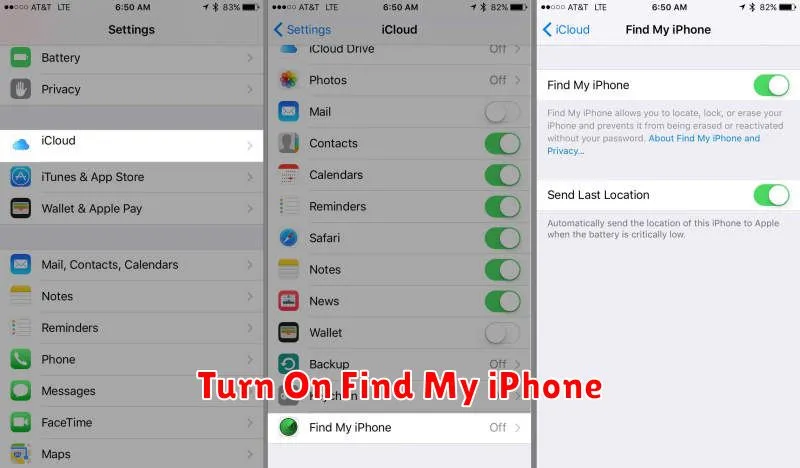 Within the Find My iPhone settings, you should also enable Find My network and Send Last Location. Find My network allows your iPhone to be located even when it’s offline by leveraging other Apple devices nearby. Send Last Location automatically sends the device’s location to Apple when the battery is critically low, potentially aiding in recovery even if the device powers off completely.