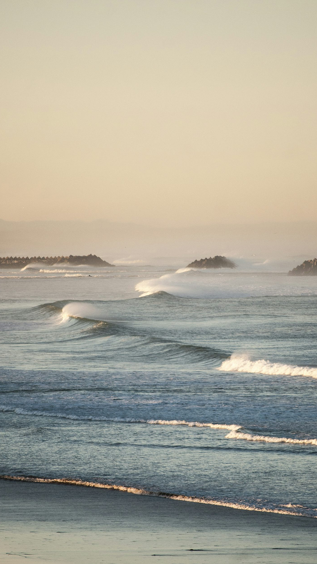 Wallpaper ini menampilkan pemandangan gelombang laut yang berombak di siang hari. Warna biru samudra yang jernih dan gelombang yang dinamis menciptakan suasana yang menenangkan sekaligus energik. Sempurna untuk memberikan nuansa pantai dan alam pada perangkat Anda. Gambar ini menangkap keindahan alam dengan detail yang tajam dan warna yang hidup, cocok untuk berbagai perangkat dan selera.